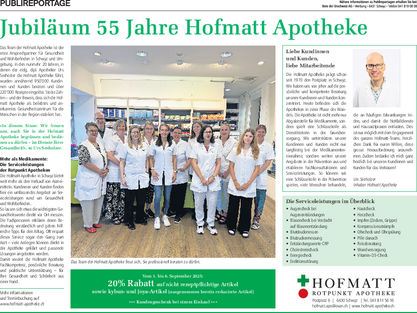 55 Jahre Hofmatt Apotheke - Feiern Sie mit uns!